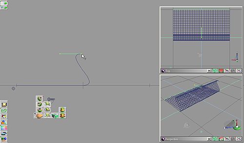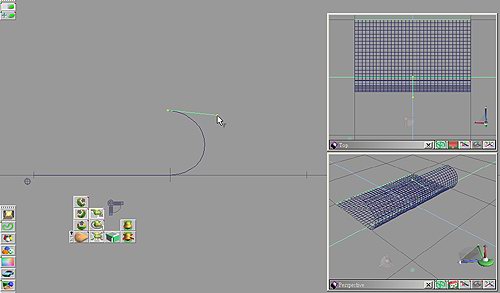 2. 在本例中我們不需加入額外的變形控制線,啟用物件變形工具並截面變形的選擇沿著垂直於 Y 軸的平面變形 (Deformation along a plane perpendicular to Y axis),並點再平面上的一側,如圖 2。