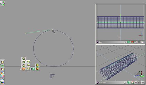 物件變形工具 (Deform Object) 是 trueSpace 上的老工具了,雖然並不是新工具,但還是非常的好用,搭配動畫的記錄,可以創造出相當有趣的效果。 基本使用首先在場景中加入一個球體,並點選變形工具。此時球體上會出現綠色的變形控制線,如圖所示。