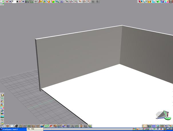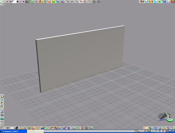 2. 在 3D 的環境中工作如同搭建一座舞台或是電影場景一般 - 必須根據所設計的場景,擺設各式的佈景、道具、設備、演員、光源與攝影機。首先開始建構一間房間,使用一個正方體,稍微的縮放大小成為一面牆。