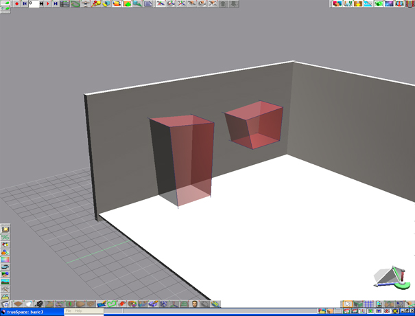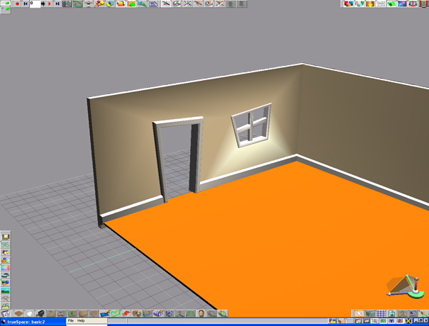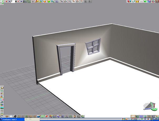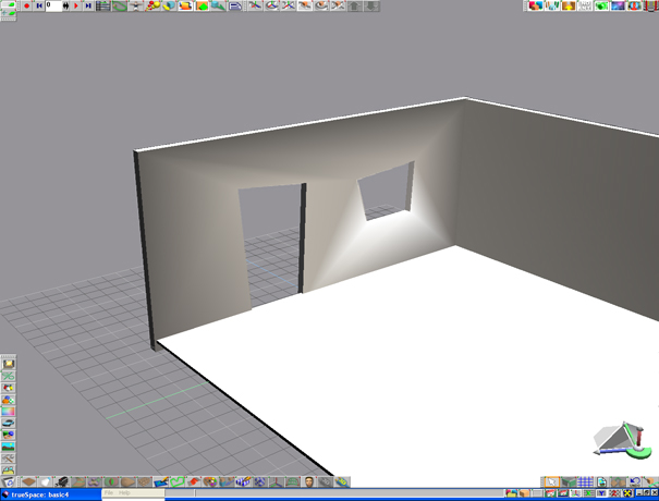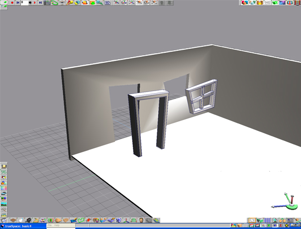 5. 當物件切割牆壁 (使用 trueSpace 內步林運算工具) 後,留下牆壁上的門與窗戶的位置。