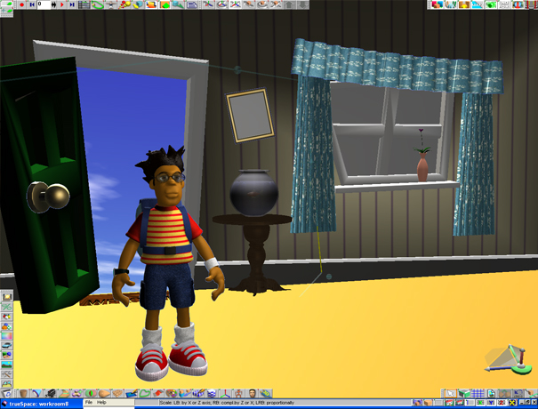 23. 再次的更換不同的視角 - 從天花板位置的鳥瞰圖。在工作中您可以隨時檢視不同的拍攝角度,以突顯您作品的特色。在 trueSpace 中選擇不同的拍攝角度,僅需調整您的巡覽控制器即可。