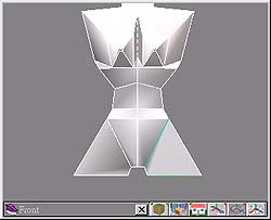 page 7-3 適用版本:trueSpace4.0以上 發表日期:1999.9.4 再接下來,我們要來做出下半身的基準面,首先選取最下方的面,如下圖 17!然後做 延展 1 次,然後縮小這個面,如下圖 18!!