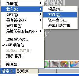 3. 分別將前翅與後翅儲存為 *.AI 檔。 4. 回到 trueSpace 中,選擇「檔案/載入/物件」開啟剛剛儲存的 *.AI 檔,如圖。