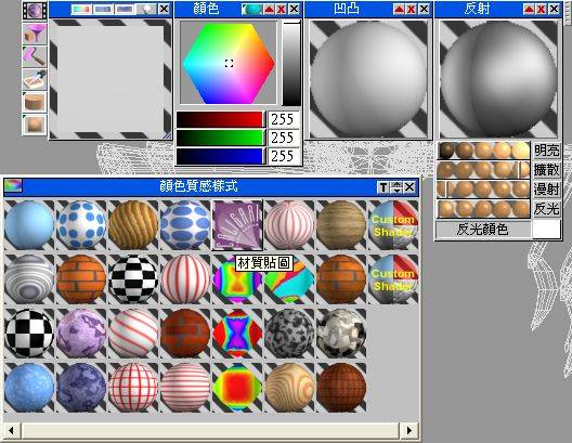 7. 再回到顏色選擇視窗上,可以在其上按滑鼠右鍵開啟「讀取貼圖檔」面板;或者滑鼠點一下「Caligari」位置,開啟「貼圖瀏覽器」,選擇剛剛儲存的