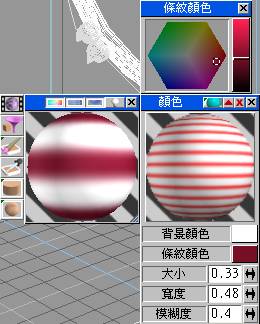 24. 製作巧克力夾心的材質,首先需要設定物件的貼圖模式為「柱狀貼圖」,而質感樣式則使用「垂直條紋」並更改設定細節,如圖 24-1,24-2。