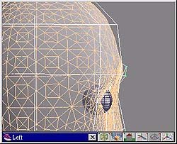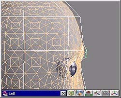 page 5-5 適用版本:trueSpace4.0以上 發表日期:1999.11.4 接下來選取上唇的控制線,如(圖 33),然後將它往上拉,注意造型是否合理,如(圖 34)