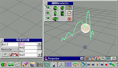 2. 加入一個 Metaball 元件,你可以視情況來縮放您的 Metaball 元件,或是改變其作用 引力,因為後面所加入的元件會繼承第一個的設定值。 3. 然後按下"路徑"按鈕,此時可以為其設定動畫路徑,路徑要從那來呢?就從我們剛剛設定 的路徑資料庫中取得,選擇路徑資料庫中的路徑,如圖 11。