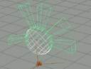 卡通狗的頭部大致完成,接著我們再次使用球體工具製作眼球的部份(圖3)。 卡通狗眼球的製作是使用布林工具與球體工具而成的。我們先製作一球體工具為眼白的部份,另外再複製兩個球體工具。並且放大其中一個來當作眼皮的部份,縮小其中一個來當作眼珠的部份。由於,眼皮是可以上下閉合的,因此,我們再開啟一個立方體物件與大的球體工具製作差集運算後,再旋轉90度複製另一個眼皮,再使用膠水工具將所有眼珠物件“黏”起來後,就完成整個眼珠的製作。 接下來,再給這隻卡通狗戴上一副非常“酷”的眼鏡。其製作過程大致也是使用布林工具的差集運算功能來完成的。而帽子的部分是使用延展工具來完成的。 在使用 trueSpace 塑形工具來調整模型的確是相當容易的。不過,我們有時也可以使用圓柱體變形工具箱來製作具有自然弧度的模型。就像是這個主角的身體一樣。 我在製作身體的部份時,由於希望能夠呈現具有自然弧度的造型。因此,我仍然開啟球體工具,並且選擇圓柱體變形工具箱來完成這個工作。在使用圓柱體變形工具箱時,會出現綠色與黃色的參考線,我們可以依照我們個人的需求設定節點數,然後再利用變形巡覽工具調整後,把球體工具放入圓柱體變形工具箱中,身體的部份就完成了。 在鞋子和大腿也是使用相同的製作方式。當然,在創作的過程中,配件的裝飾也是不可或缺的,像是皮帶或是鈕扣的裝飾,都可以使我們的模型更加精緻。