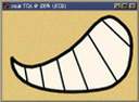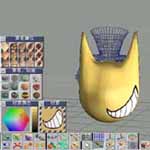 卡通狗已經完成了,不過,顏色卻不對?(圖8)也許有些人會問?要貼圖還是材質? 就以卡通狗的例子來說,不同的貼圖或材質均有不同的效果。在卡通狗臉部牙齒的地方,由於我們所強調的是卡通狗誇張的表情,因此,我們可以用 UV 貼圖的方式將卡通狗的情緒“貼”上去。既然是“貼”上去的,我們便可以在一般的繪圖軟體,像是 adobe Photoshop 中將事先已經建立的圖形,從 trueSpace 的著色工具中調整其它的設定值。以便天衣無縫的與卡通狗頭部完美的配合。在使用UV貼圖時,我們應該要知道 UV 貼圖有什麼優、缺點,這對於作品的完整性來說是很重要的。(圖9、10、11、12、13、14)
