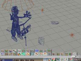 現在,我們繼續設定卡通狗有關材質的部份。從 trueSpace 的著色工具中,我們可以把使用貼圖關閉並且調整材質顏色,直到我們所需要的顏色為止。其實,在 trueSpace 中貼圖與材質是可以並存的。當然,你也可以製作許多層的 UV 貼圖而不用設定任何材質,隨你高興,完全由你自己決定! 立體的場景,完美的光線,讓我們的模型更有氣氛! 沒有光線的世界,人生是黑暗的,有光線的世界,人生是彩色的。在3D的環境中,光線絕對是不可或缺的;不同的光線也可以塑造不同的氣氛(圖15)。trueSpace 提供了三種模式的燈光並且都可以設定陰影,這三種模式的燈光分別是自然光、泛光燈、聚光燈。本單元中,我們選擇了泛光燈和聚光燈。選擇泛光燈的原因是用來補償聚光燈陰暗部份的不足,當做補光;聚光燈又稱為舞台燈,通常用來表現戲劇化的劇情所常見的,也是這個場景裡的主光(圖16)。在這裡我們選擇聚光燈的原因就是希望將玩具狗滑稽有趣的表情和周遭環境做強烈的對比。