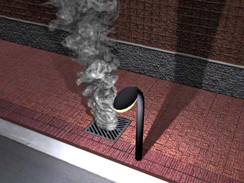 - Flow:Rate使用Dribble的形態,噴射的角度及密度不要設的太激烈。蒸氣只會向上飄散,所以噴射方向的XYZ軸,我只有設定為「+」。