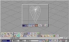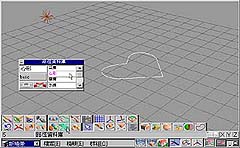 你可以利用「自由曲線多邊形」來畫一個心形,但是那樣太慢,在trueSpace2中的「路徑資料庫」就已經有一個現成的心形,請按下「心形」選項,於是你的場景中便會出現一個平面的心形: