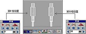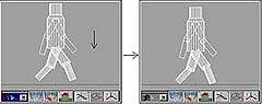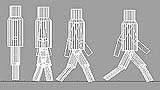 不過,如果你夠細心的話,你會發現在第30格的時候,由於腳部彎曲,所以腳部會高於地面,而產生整個機器人是浮於地面的現象,所以我們最好在第30格時,將機器人的高度降低,使腳部能踏在地面上,如圖所示: