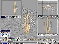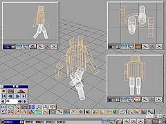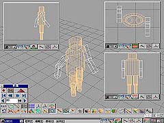 要播放時,最好選取到整個機器人,然後按下「播放」按鈕或鍵盤的P,便可以觀察我們所設計的機器人走路動畫,如圖所示: