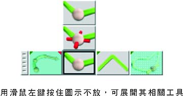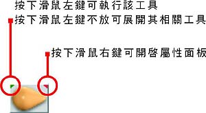 展開相關的工具。若是您不想選擇該項工具,在鬆開滑鼠之前,將指標移動到該圖示之外鬆開滑鼠即可。