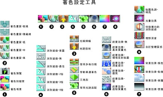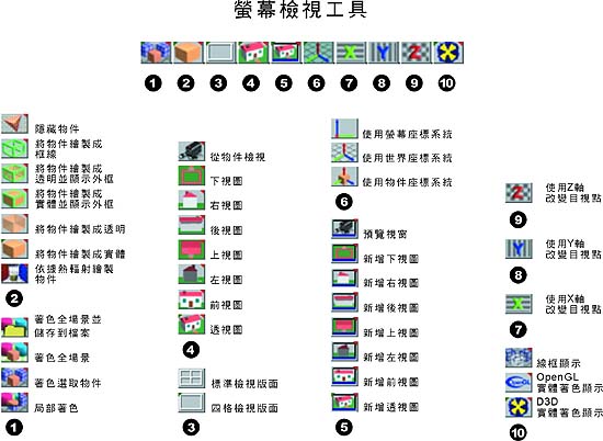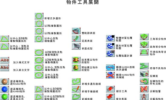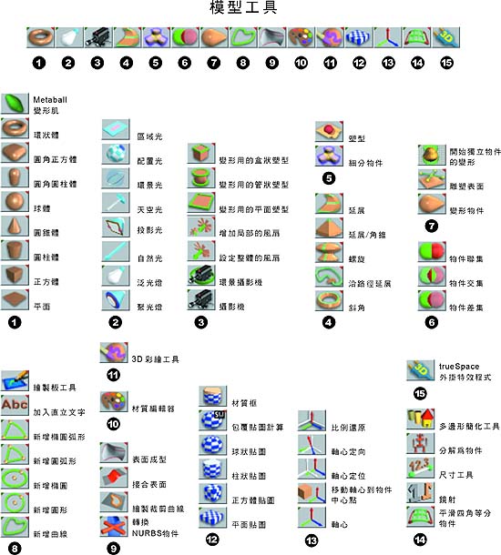 trueSpace5 工具列對照表資料整理 : 仕冶資訊技術服務小組 |