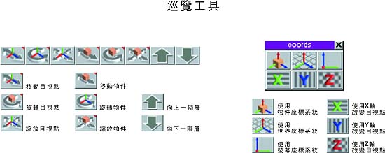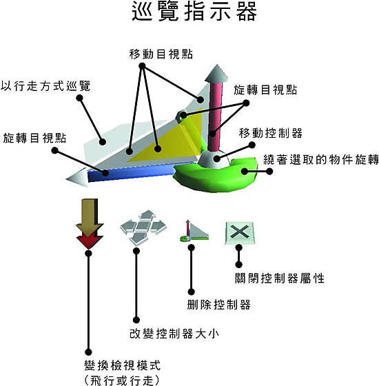 巡覽指示器 場景巡覽工具,可控制目視點 – 移動、旋轉。