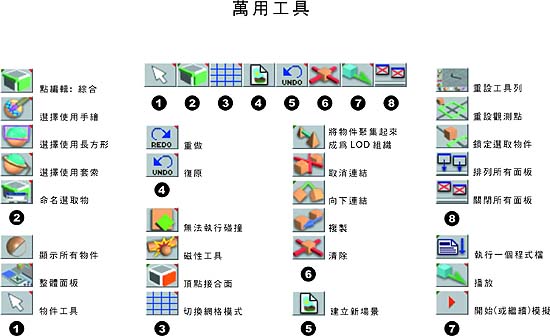 | 工具列使用 | 工具列展開 | 編輯工具組 | 編輯器 | 3D 控制器 |