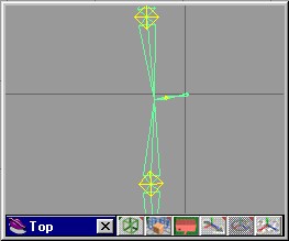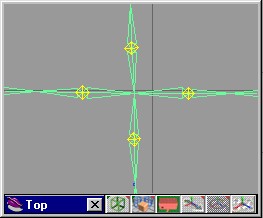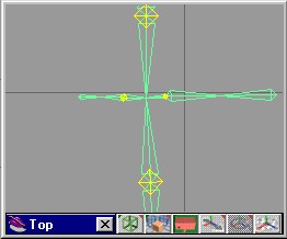 | 用相同的方法為每一隻觸角加入骨骼。我們可以將滑鼠移到骨架的中心部位,在它的附近點一下便可以增加新的觸角骨骼。trueSpace常會接著最後一根骨骼後面加入新的骨骼,若你遇到這樣的困擾可以重新調整中心部位,將不相干的骨骼移開。 | |