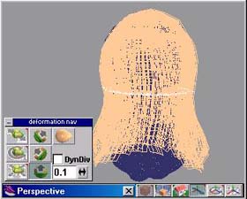 提醒您一下,當您啟動變形工具時,其綠色的變形控制線較少。您可以在開始進行變形前,適度的增加變形控制線 (在場景空白的區域中,同時按下滑鼠左右鍵拖曳,可增加控制線)。 若是您已經進行了變形,無法增加控制線的話,您可以選取點編輯工具,其會出現一對話框,說明物件已有變形,詢問您是否要刪除此變形,您可以選擇“是”。當然啦! 最好的辦法還是在進行操作前,先將髮束複製或存檔,這樣可一勞永逸。