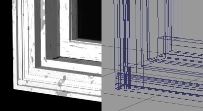 下面的例子就是我所強調的重點。其一就是窗戶的部份,您若是不把它處理好,很容易會被其他人發現。如果您在製作時忽略了窗框或窗軌,大家可能會覺得少了些什麼,看起來有點怪怪的。我從事木匠工作已經20年了,蓋過數不清的窗戶;但是您無須去作一個木匠,只要注意您窗戶的這些細節。雖然有點瘋狂,但現在還稱不上完美。身為一個專業的木匠,我比較傾向於在trueSpace中製作模型如同在我的工作室中一般,這部份就比較辛苦,毫無取巧之處。