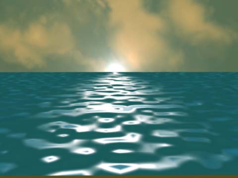 接下來您就必須挑選一個好角度來檢視畫面,著色後的畫面如圖十六所示(您可以點這張圖片來觀看較大的圖片)。 這個例子非常的簡單,但是可以營造出一流的氣氛,稍加以變化就可應用在其他的地方,正是電腦繪圖的精神所在。 |